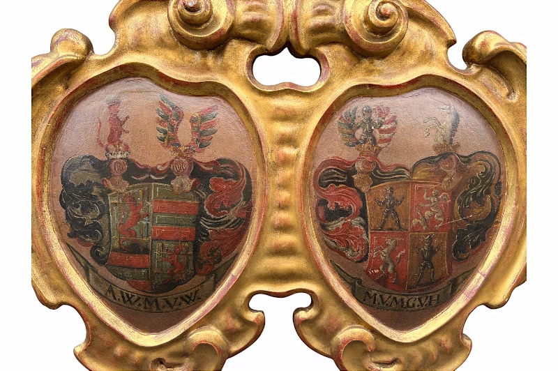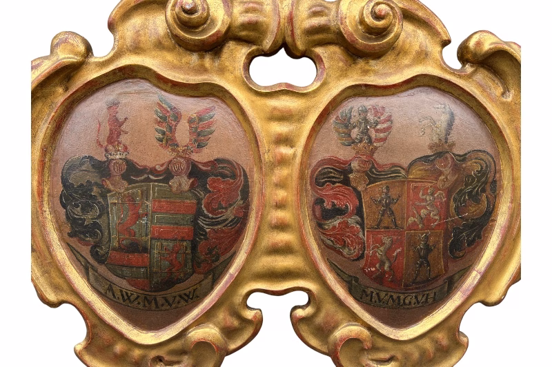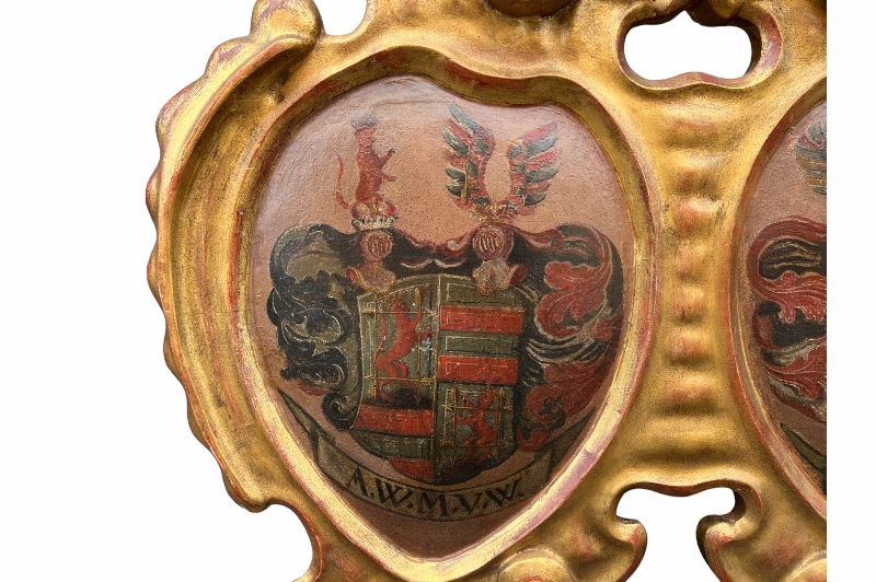 Altes Hölzernes Familienwappen Allianzwappen Kompositwappen coat of alliance