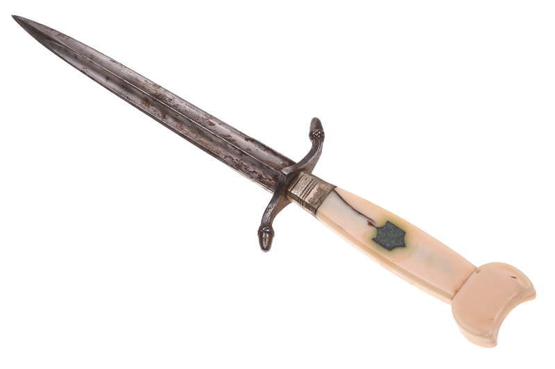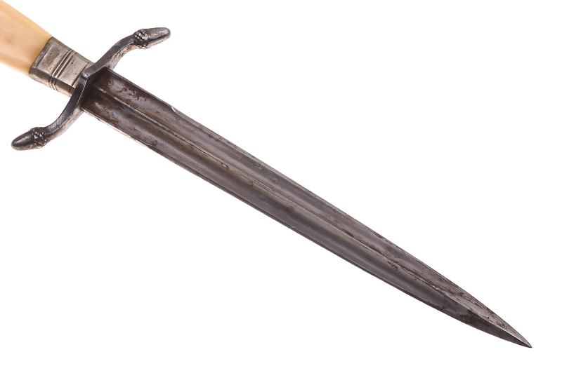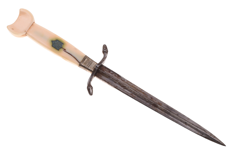 Hier sehen Sie das Messer Dagger Dolch Stiletto mit Beingriff ca um 1800
