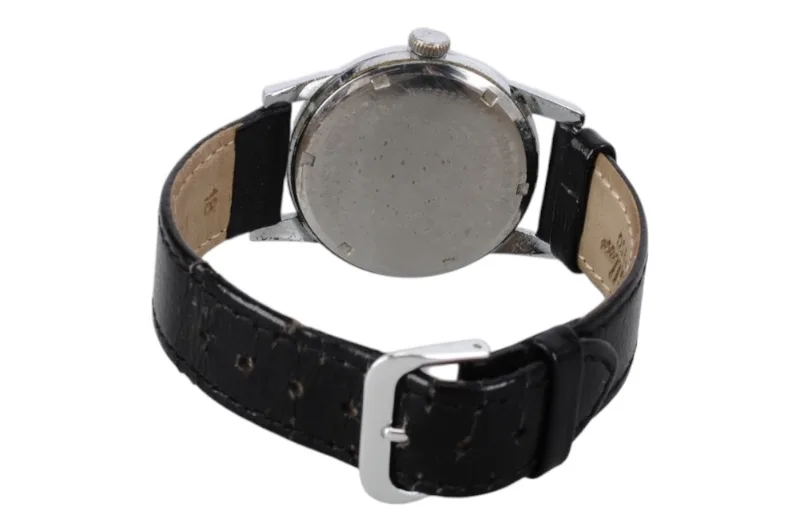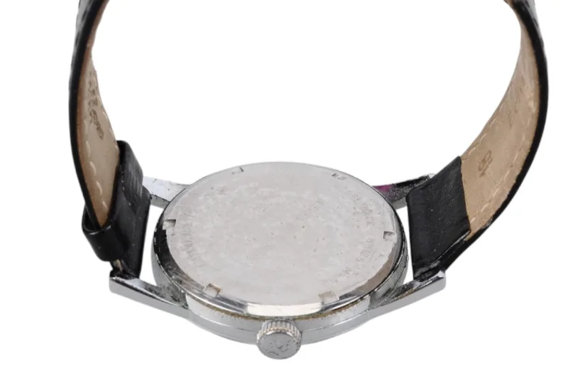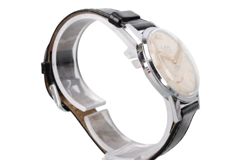 Die Uhr ist vermutlich aus den 1950er oder 1960er Jahren. Sie hat ein Hilfsziffernblatt mit Sekundenanzeiger.