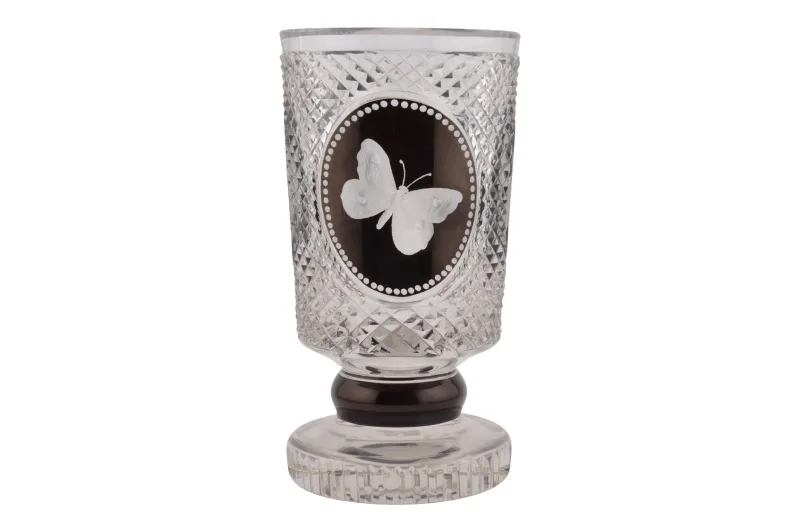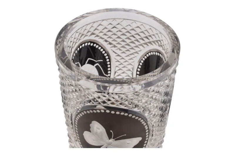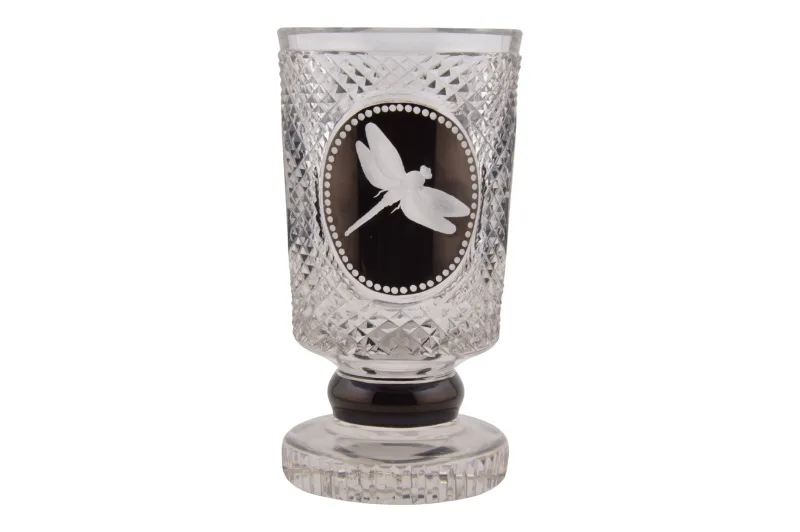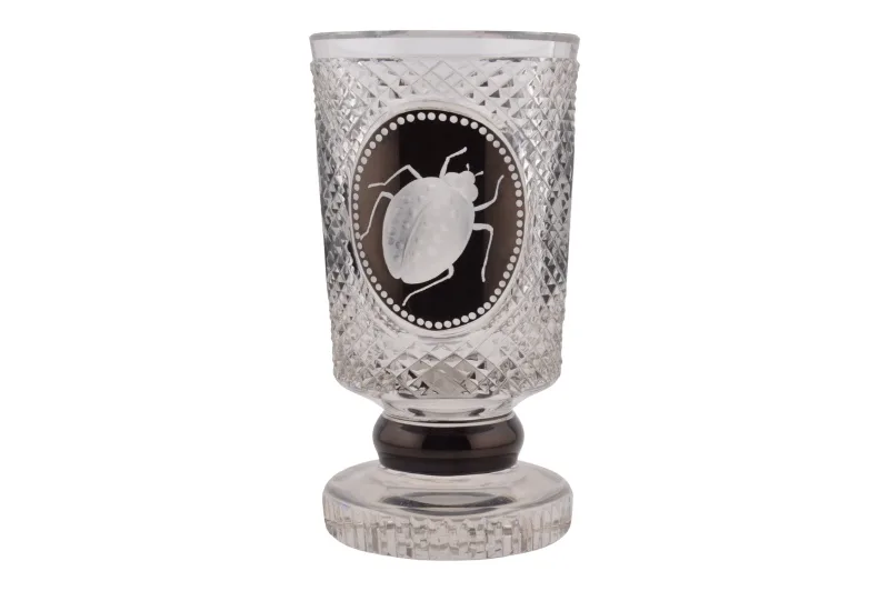 Kristallglas Kelch mit handgeschnittenem Insektenmotiv