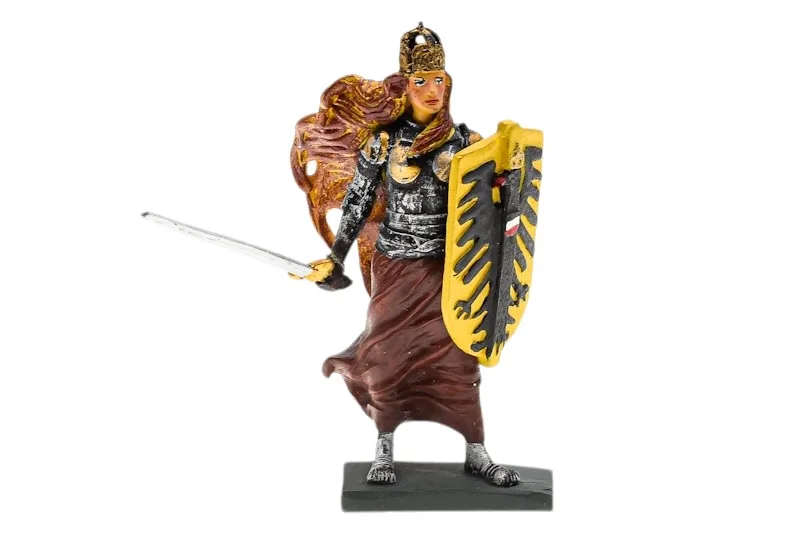 Hier sehen Sie die Figur der Brünhilde Königin von Island aus der Nibelungensage von der Firma Lineol/Duscha.