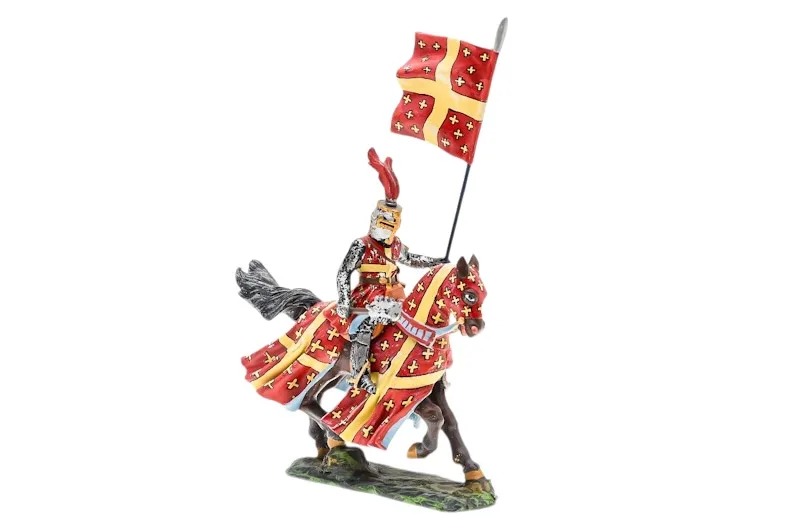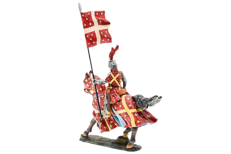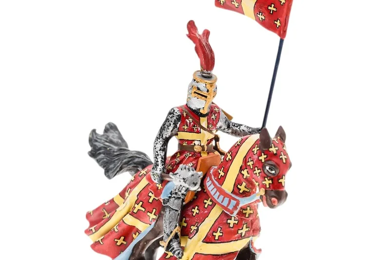 Lineol Duscha Ritter zu Pferd mit weißem Kreuz Banner, Crusader on horseback