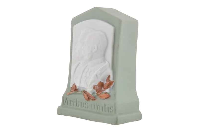 Unterhalb der Seitenportraits trägt die Dose den Schriftzug ‚Viribus unitis‘.