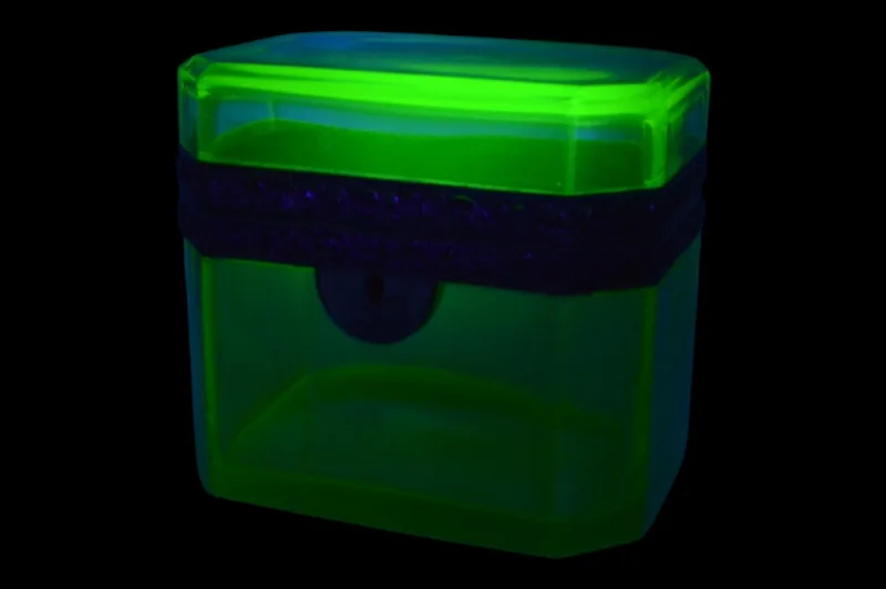 Hier sehen Sie eine schöne alte Schatulle aus Uranglas.