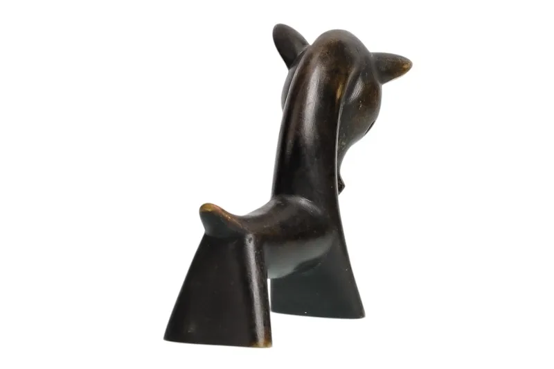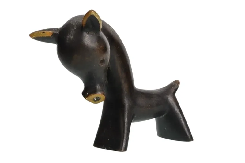 Hier sehen Sie die einen dunkel patinierten Esel aus Messing, der formsprachlich nach den Wiener Künstlern wie Bosse, Baller, Rohac oder Hagenauer kommt.