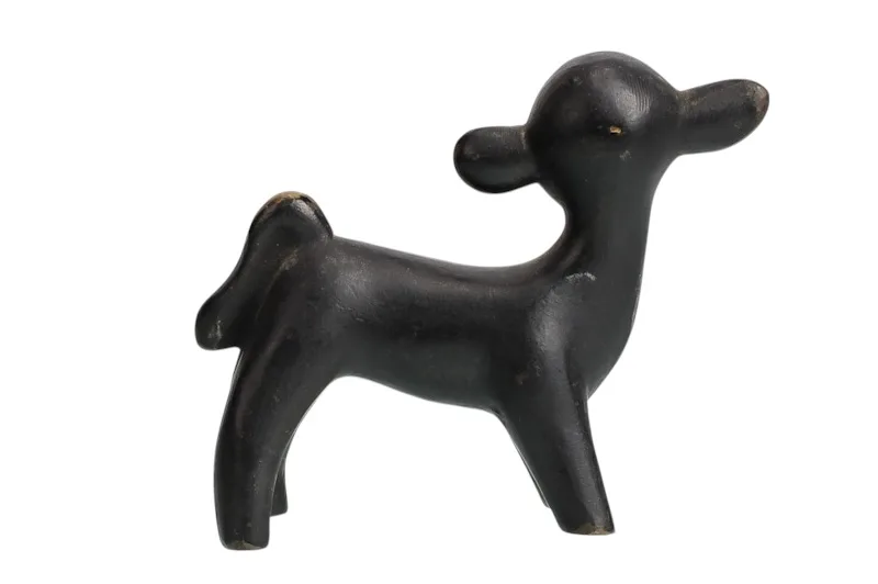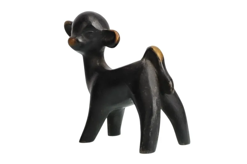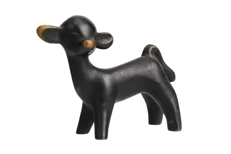Hier sehen Sie die ein dunkel patiniertes Lamm aus Messing, das formsprachlich nach den Wiener Künstlern wie Bosse, Baller, Rohac oder Hagenauer kommt.